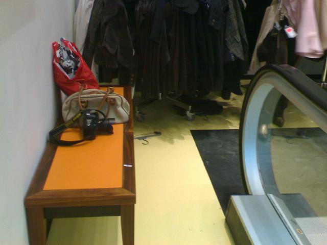 Äntligen en bänk! Annars finns det inga, inga, inga ställen att sitta på när man är ute och handlar i Köpenhamns affärer. Och dåligt med fik också.