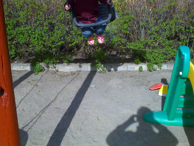 Högre fart! Ända upp i himlen! Gunga mera! Större fart! Och så går det på, halvtimmesvis, sen en kort tur i rutschbanan, en liten sniffning i sandlådan och sen igen… Högre fart! Mera putta!