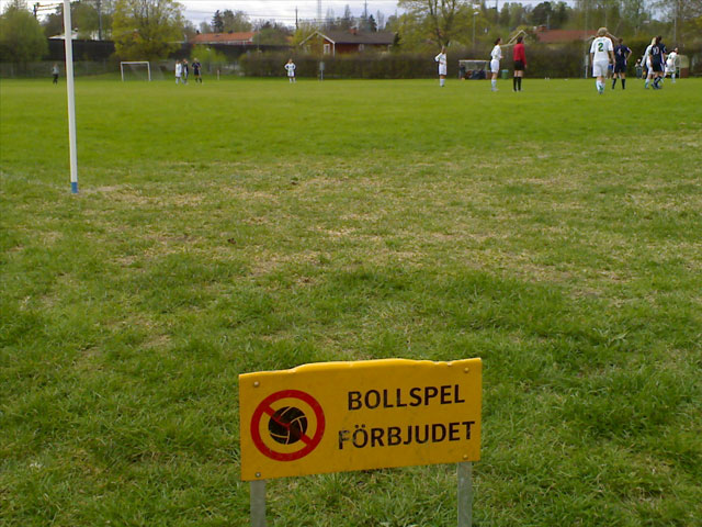 Damfotboll i division tre, full kamp på plan och en liten, liten, skylt som inte ens domaren verkar ha sett.