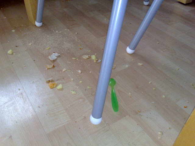 Morgonflickorna behöver bara en kort stund för att konsumera sin dagliga halva frukost. Den andra halvan ligger i prydliga högar på golvet, i väntan på myror, silverfiskar och en röd dammsugare.