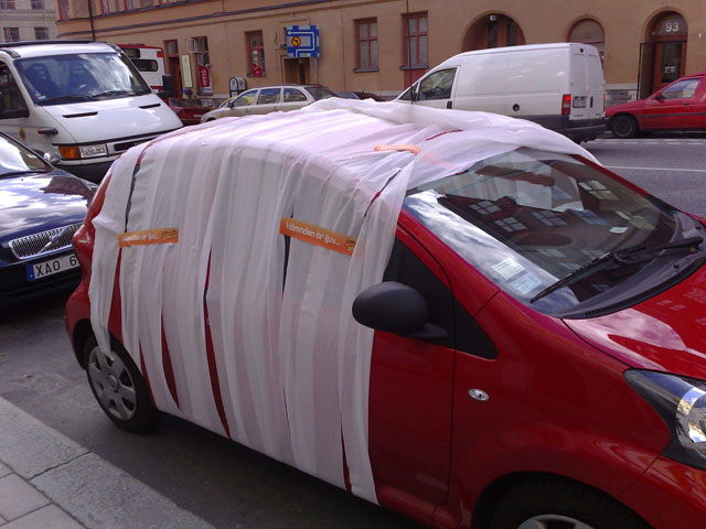 Hämndogram stod det på den röda bilen, invirad i toalettpapper och med nummerskylten på sned.Hämndogram. Undrar vad tjejen/killen som ägde bilen hade gjort för att förtjäna en sådan behandling. Men jag har mina aningar: snart kommer ett nytt program på TV6 med Tilde Fröling som heter Mitt i nyllet. Där har vi alla gånger svaret. Ibland skrämmer hon skiten ur folk, och avslutar med en liten kram. Hon får nog lukta extra gott om den kramen ska väga upp de filmade hämnderea.