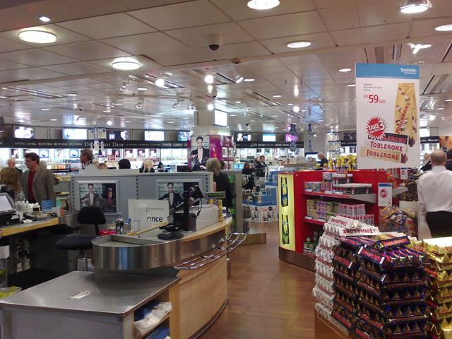 Förr var det sĂ¥ att halva nöjet med resan var taxfreeförsäljningen, bĂ¥de pĂ¥ flygplatsen och ombord pĂ¥ planen. Man gjorde fynd. Det var billigt. Numera är priserna inte bättre pĂ¥ flygplatsen, tvärtom. Det ser bara ut som om Tobleronen är billig, för att den ligger som ett slott, där vid ingĂ¥ngen.