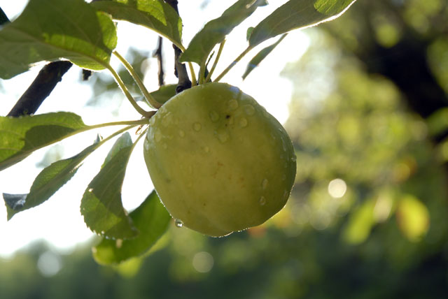 Det är när äpplet hänger där på trädet, alldeles nyregnat, som det ser som läckrast ut. Från det att man plockar det, så går det bara utför. Det blir maskätet, torrt i skalet, det brunar ner sig och skrumpnar ihop. Lite som vi människor. Det gäller helt enkelt att inte bli plockad.