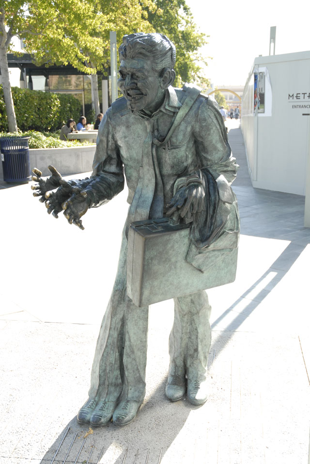 Den här statyn står undangömd i en park, Yerba Buena gardens, bakom Moscone kongresscenter i San Francisco. Det tar ett tag innan man ser att den är lite annorlunda. Från att bara vara en gubbe vilken som helst, blir den en stressande figur med mycket att göra och svårt att nå fram.