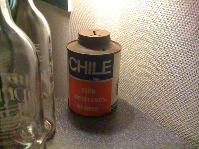 Nu har vi varit på vår första nostalgiska proggfest. Det kändes helt naturligt efter att genom åren ha avverkat discoafton, Elvisfester och åttital. Lars som kom i full mundering vann utklädningen, inte minst tack vare sin chilebössa från tiden när det begav sig. Bara det faktum att han kunde knäppa ihop sin sparade mahjongkostym var värt förstapriset. Man skrålade till Jösses flickor, åt chili con carne, päron med smält choklad, och senare fick vi varm macka.