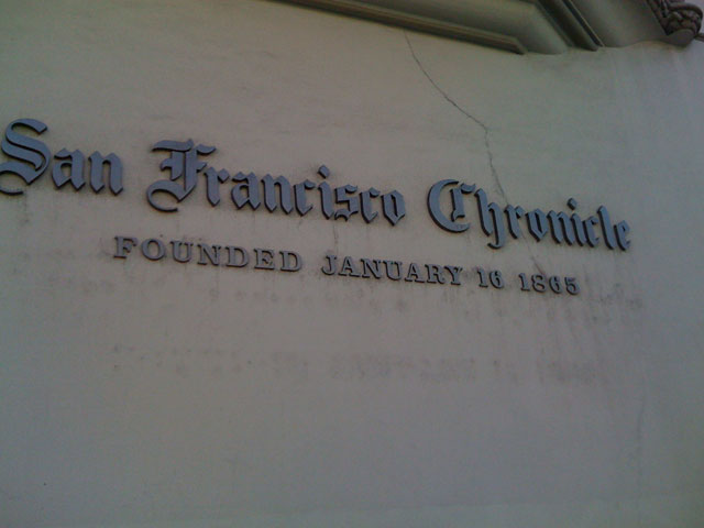 Nu hittade jag bilden, djupt gömd på ett minneskort i min mobil. San Francisco Chronicles huvudkontor. Jag vet inte varför, men en gång i tiden ville jag jobba på den tidningen. Det kanske var någon bok jag läste, eller så var det för att den hade frågespalten “Dear Abby”. Och så helt plötsligt står man utanför huvudentrén. San Francisco Chronicle. The dream. The Myth. My picture.