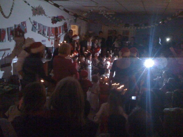 Fordom skönjdes lussebarnen under stearinljusens fladdrande sken. Numera syns inget i de små digitalkamerornas sken, bara bländande ljuskanoner som fladdrar sönder eventuella batteriupplysta luciakronor och tärneljus. Jag gissar att alla föräldrar går hem, pluggar in kameran i datorn och ser vad som egentligen hände.