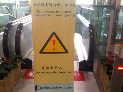 “Do not enter the dangerous”. En uppmaning på Pekings flygplats, där den avspärrade rulltrappan väntade på nästa offer som dristade sig förbi skylten. “Do not enter the dangerous”.