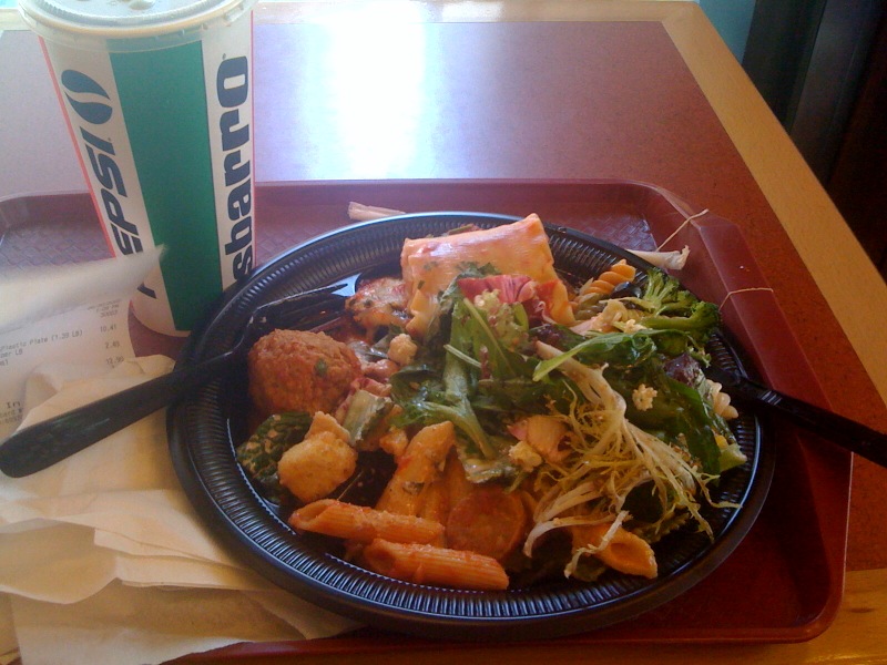 Buffé, betalas per vikt, vid times square.