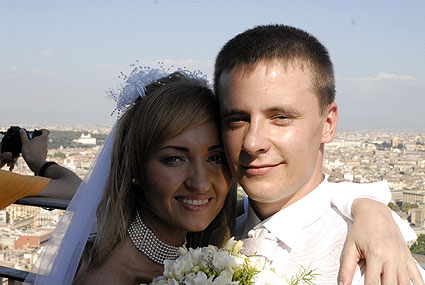 Bet ne šis pāris no Latvijas. Nevainojami baltā kāzu kleitā viņa stāvēja kopā ar savu vīru ar visu Romu pie kājām. Uzņēmu šo bildi un apsolīju atsūtīt, kad būšu mājās, bet e-pasta adrese ir pazudusi.