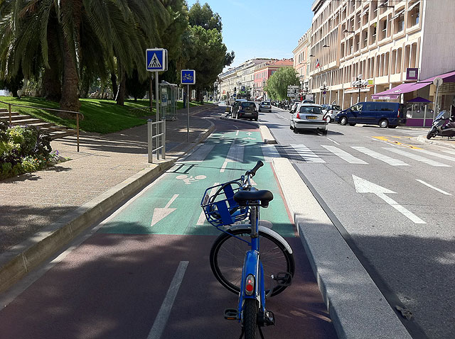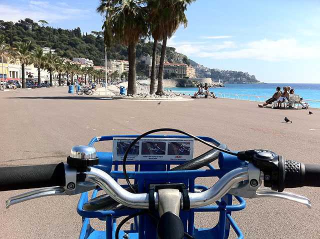 En cykeltur i Nice får dig att uppleva så mycket mer. Inom en timme kan du lyssna på de tre killarna som spelar riktigt bra musik, se konstnären som fångar medelhavsblått, hänföras av utsikten från kullen vid kastellet, kolla in regattan bakom domarnas torn, småcykla i gränderna i gamla stan för att via säkra cykelvägar ta dig tillbaka till strandpromenaden och lämna cykeln i någon av alla depåer som finns utplacerade över hela stan.