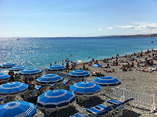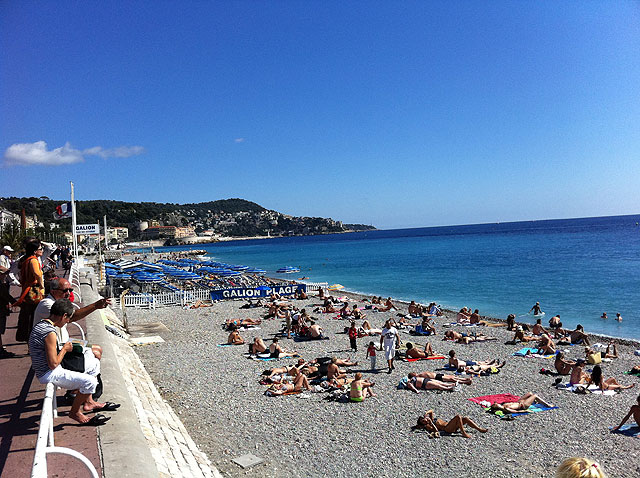 Vad som än händer och vart du än går i Nice, så hamnar du på ett eller annat sätt längs stranden, på Promenade des Anglais. Alltid lika händelserikt och lockande. Det sägs att om man sitter några timmar på Café de Paris i Rom så ser man alltid en bekant. Jag tror en bänk längs promenaden i Nice fyller samma funktion.