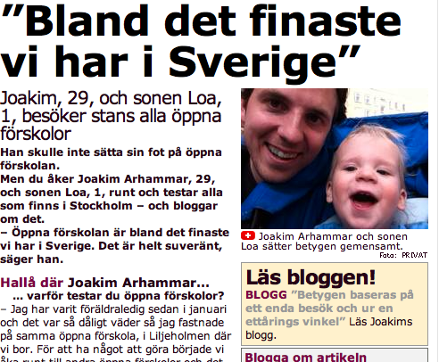 Öppna förskolan får gott betyg av Jocke och Loa. Här kan du läsa om det i Aftonbladet. Och vill du kolla in förskolebloggen direkt så klickar du här.