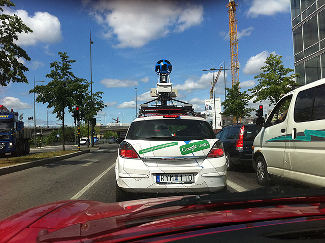 För vad händer när jag strax efter rullar anonymt på gatorna? Google direktsänder mig. Så nu vet alla att jag svängde vänster vid Lindhagen och höger upp på Essingeleden. Jag passar på att vinka till publiken.