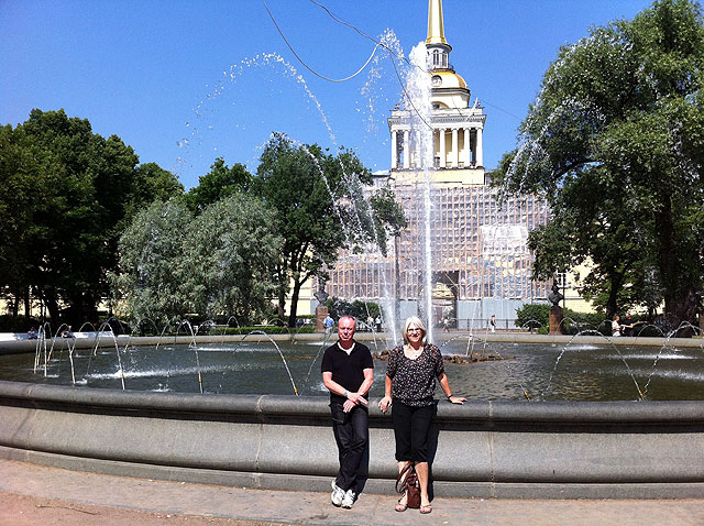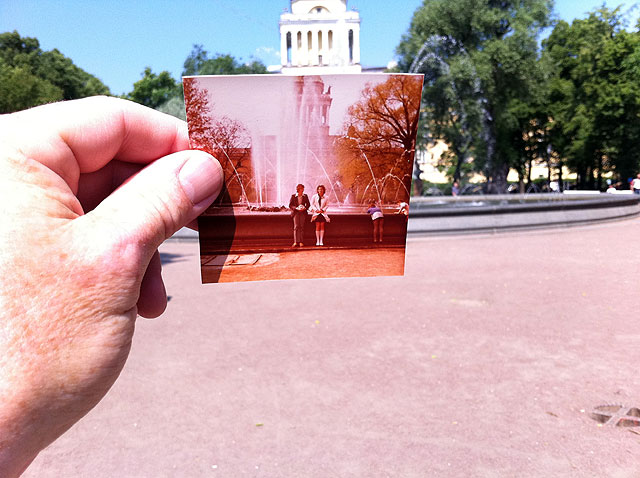 Då fanns det ett 40 år senare. Det var den 19 maj, dagen efter den där kvällen utanför Lenins hus. Vi visste inte vad de åren skulle föra med sig, men vi visste att vi skulle få vara med. Sådär som man vet det mesta när man är ung. När vi vände oss från fotografen och tittade in i framtiden, där vid fontänen utanför amiralitetet i Leningrad, hörde vi bruset från kaskaderna och jag hörde två hjärtan som börjat slå i samma takt.