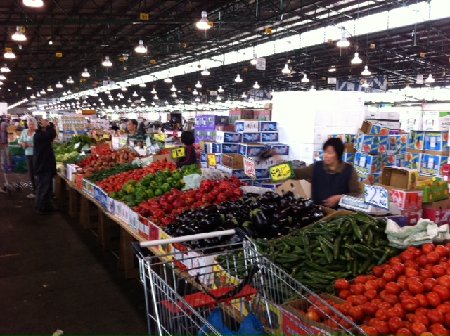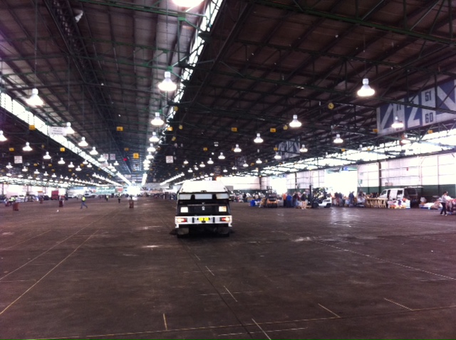 På marknaden i Flemington, Sydney, bland fisk och kött och grönsaker. När vi kom var den jättestora byggnaden tom och tre sopmaskiner rensade golvet. Efter fyra minuter, knappt, var kommersen igång och stånden uppsatta. Vilken speed! Gud vet var allt kom från, det liksom bara uppstod.