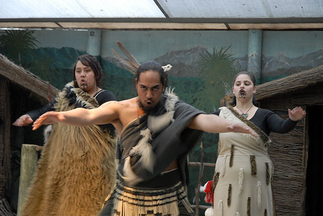 Här gör grabben en Haka, dvs en Maoridans med tungan ute, en sån som skrämmer skiten ur motståndarna vare sig det gäller Rugby, basket, fotboll eller ett vanligt slagsmål. Jag gjorde själv en Haka efter lite instruktioner, och förutom att jag skrämde mig själv halvt från vettet så fick jag en härlig träningsvärk. Överallt.