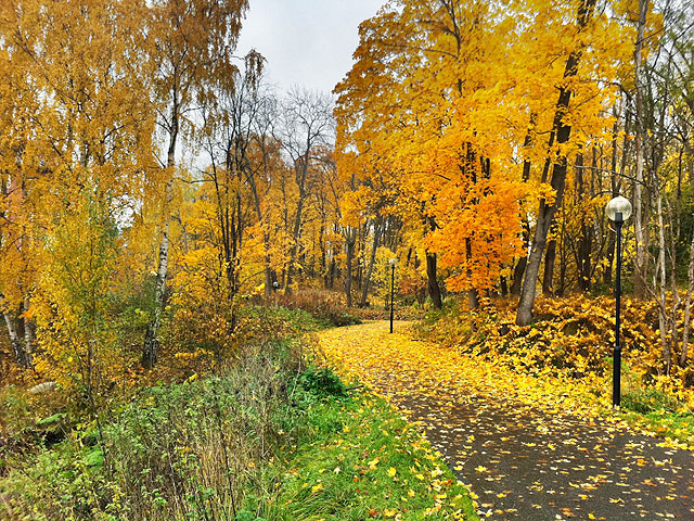 Det är höst i Solna. Jag tror, nej jag är helt övertygad, att hösten gör sig bäst på bild. Då känns inte den isande fukten, då ser vi bara färgerna. Solen ser ut att värma, det råder harmoni och lugn. Utanför bilderna är det grått, kallt, källarlikt, fuktigt, kusligt. Det är höst i Solna.